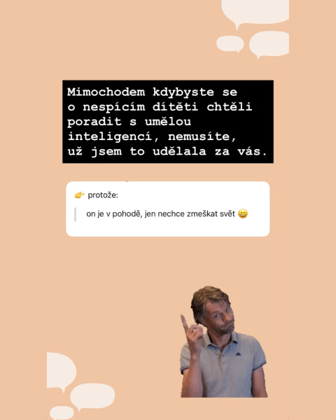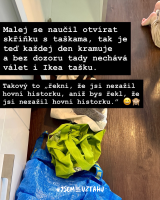 - Intenzivně jsme začali shánět truhláře na dokončení našeho kuchyňoobýváku. Tenhle odstavec bude dlouhej, tak ho kdyžtak přeskočte, ve zkratce to ale napsat nejde. Už během těhotenství nám bylo jasné, že budeme muset doma udělat nějaké úpravy, aby se nám tady ve třech žilo lépe. Hlavním cílem bylo vybudovat v obýváku pracovní kout, aby se z pracovny časem mohl udělat dětský pokoj. Tak nějak jsme tušili, že v prvním roce života dítěte je pokojíček dobrej jen na vystajlovaný fotky na Instagram, takže jsme na to úplně netlačili. Plán byl, že v těhotenství připravíme projekt a až se s mimčem sžijeme, já s ním na dva týdny odjedu a doma se udělají všechny potřebný práce. Vizualizace jsme měli odsouhlasené v listopadu, ještě v prosinci jsme psali „našemu“ panu řemeslníkovi, který už nám toho doma kus popracoval, ať s námi příští rok počítá, že se ozveme. Souhlasil. V březnu jsme to začali ladit. Než jsme dali dohromady materiály, detaily, dekory a jeho časové kapacity, byl červen. S pětiměsíčním Inžátkem ve vajíčku jsme objeli všechna olomoucká kuchyňská studia a dodavatele materiálu, abychom si ujasnili vše potřebné. Když totiž chcete „rýpnout“ jen do části pokoje a nedělat vše z gruntu nové, je to peklo. Naráželi jsme na další a další problémy při realizaci nápadů, které na papíře vypadají dobře, ale reálně jsou velmi obtížně proveditelné. Ve finále jsme museli svolit i k výměně kuchyňské pracovní desky. Původní dekor už se samozřejmě nevyrábí, takže jsme tak dlouho hledali typ, co by ladil ke starému i novému nábytku a současně na něj šel přidělat dřez se spodní montáží (ano, to je samostatná kapitola, o té zase někdy jindy…), až jsme vybrali desku, která nebyla nikde skladem a dodací lhůtu má čtyři až osm týdnů. S panem řemeslníkem jsme se tedy domluvili na září, že do té doby vše objednáme a nachystáme, a pak už to bude „jen“ akce kulový blesk. Celé jsme si to písemně potvrdili a zaplatili zálohu. Koncem léta už jsme ho museli trochu uhánět, protože jsme chtěli znát přesné datum začátku a zařídit se podle toho. Měl za sebou krátkou pracovní neschopnost a datum furt ne a ne říct, ale souhlasil s tím, že se u nás staví, abychom si teda ještě jednou zopakovali, co a jak se bude dělat, protože za ty měsíce už jsme se v tom všichni popravdě trochu ztratili. Přijel ve čtvrtek, dvě hodiny jsme nad tím seděli, plácli jsme si a odsouhlasili si začátek v dalším týdnu. „V pondělí mám ještě nějakou kontrolu u doktora, ale v úterý bych nastoupil.“ Všechno z pokoje muselo pryč. Za víkend jsme si s Inžou mákli jak dlouho ne. Inžátko už se vesele batolilo, takže cokoliv jsme sbalili do krabice, rovnou tahalo ven. Inža jel asi třikrát pro další prázdné krabice do Lidlu, vůbec jsme nechápali, že máme tolik věcí a už to není kam dávat. Vyklidili jsme jeden pokoj a celej zbytek bytu se stal krabicovým skladištěm. Do toho jsem sebe a Inžátko musela na dva týdny sbalit. Batoh pro mě a dvacet osm kufrů pro malýho, znáte to… Mazec, mazec, vůbec nechápu, jak jsme to zvládli. V pondělí jsem s malým odjela k tátovi na chatu. Po práci za námi měl přijet Inža, aby mi pomohl vše vytahat z auta a vnitřek zabydlet tak, abych tam s dítětem mohla fungovat. Vystoupil z auta a hned jsem viděla, že je úplně zelenej. Čekala jsem nějakej megaprůser, fakt mě jako první napadlo, že se muselo někomu z rodiny něco přihodit. „Stalo se něco?” - „Počkej, musím se na něco podívat…” Vytahuje telefon, otevírá internetové bankovnictví a na účtu mu svítí právě teď vrácená záloha. Řemeslník zítra nenastoupí. Z „ještě kontroly u doktora” se vyklubala docela vážná diagnóza, se kterou putuje rovnou na operační sál. Právě to Inžovi zavolal do auta. Hm. Chápeme, že tohle jsou v životě chvíle, kdy se člověku totálně přehází priority a ve kterých nikoho nezajímá, že jsme si kurva mákli, abychom se dostali do tohohle bodu. Dali jsme si týden na „vzpamatování se” a začali jsme shánět jiné pracovníky. Co měl původně zvládnout jeden člověk (a proto jsme na něj taky čekali – přesekat elektriku, zapravit díry, nainstalovat sádrokarton, vymalovat, nahodit stěrku, vyrobit a namontovat nábytek) teď muselo dělat šest různých lidí s časově rozličnými harmonogramy. Už čtyři měsíce žijeme napůl sbalení, furt něco hledáme, skáčeme přes krabice a jsme z toho střídavě na mrtvici a střídavě šťastní, že i přes to peklo máme SKORO HOTOVO. Tak už „jen“ ten nábytek. Do kterýho se nikomu nechce, protože obsahuje částečnej zásah do kuchyně. A to je pracný a málo výdělečný. Některý výsměšně-odmítavý zprávy byly fakt frustrující. Ach jo. Dejte svoje děti na řemeslo, dejte svoje děti na řemeslo, dejte svoje děti na řemeslo. Amen. (Na internetu jsem četla vtip, že zatímco v roce 2006 nám říkali, ať se dobře učíme, abychom nemuseli pracovat rukama, v roce 2026 se musíme dobře učit, abychom si mohli dovolit zaplatit práci lidí, kteří se živí rukama. Takže asi tak.)