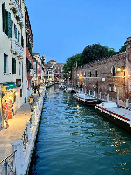 Ve stanici Benátky vystupujeme něco málo po osmé večerní a procházíme městem, které už je vylidněné. Je to jedinečný zážitek (oproti přeplněným uličkám, kterými se prodíráme další dny) a atmosféra města nás tento večer dostane. Nebydlíme přímo v centru, ale na ostrově Lido. Kroky směřujeme k zastávce přívozu, který nás tam má přepravit. Být tu sama, už teď jsem napůl ztracená. Inža ale vytahuje telefon, dělá svoje abrakadabra a najednou máme lístky na místní „vodní metro“ i čas odjezdu naší linky. Třídenní jízdenka nám sice prvně připadá drahá, za dobu našeho pobytu ji ale vyždímáme tak, že nakonec máme pocit, jako bychom ještě vydělali.