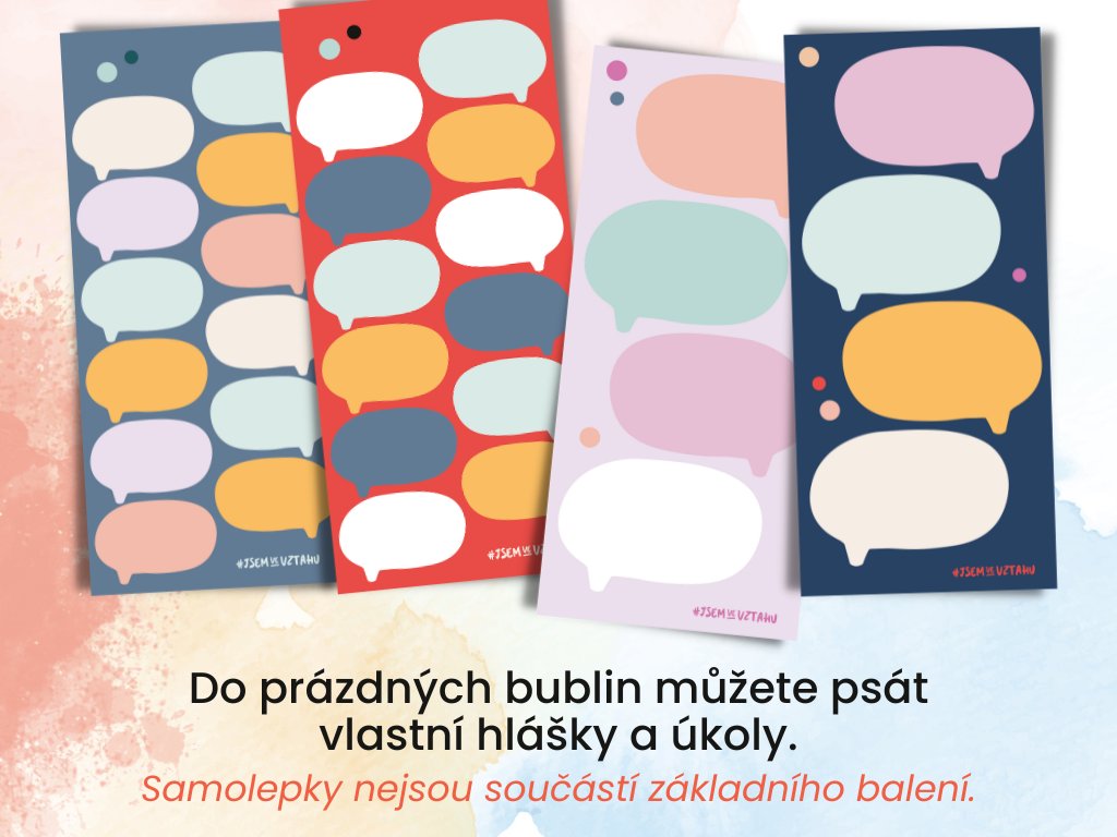 Do košíku můžeš přihodit i nálepky na vlastní hlášky a úkoly.